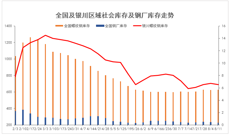 對比四月份的市場表現,筆者發現,兩個時期的市場表現是有共同點存在。四月底開始,在中頻爐一刀切等利好政策的炒作下,市場價格快速拉高,短短一個月時間,拉漲幅度達到400元/噸,但隨著終端接受度的降低,市場價格開始小幅下行,下跌幅度在140元/噸左右。而對比目前形勢,市場庫存都處于相對偏低水平,全國及銀川了螺紋庫存分別在626萬及6.5萬噸左右,另外,炒作點也有相似之處,中頻爐去產能都在其中扮演了重要角色。但唯一不同的是,上半年拉漲主要是期現價差修復,而目前期現基差回歸理性,供需關系或成為影響市場的主要因素,因此,預計市場或仍將延續V字型走勢,跌幅在100元/噸左右,適當小幅下跌之后,繼續上行。